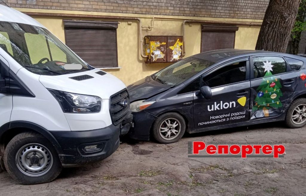 Учасники ДТП – два легкові авто та бус. Імовірно, спочатку на перехресті зіткнулися легкові автомобілі. Після цього один із них (“Тойота” із розпізнавальними знаками таксі) вдарив припаркований мікроавтобус “Форд” (з табличкою «Аварійна»).
