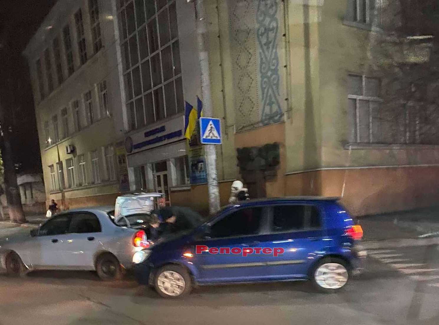 Зіткнення двох легкових автомобілів було на перехресті пр. Гімназичного та вулиці Соборної, поруч із будівлею ВПУ. Попередня причина – недотримання безпечної дистанції.