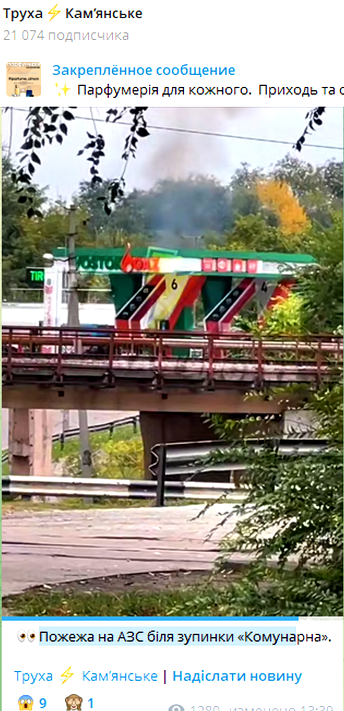 Соцмережі Кам’янського повідомляють про пожежу на АЗС: що насправді?
