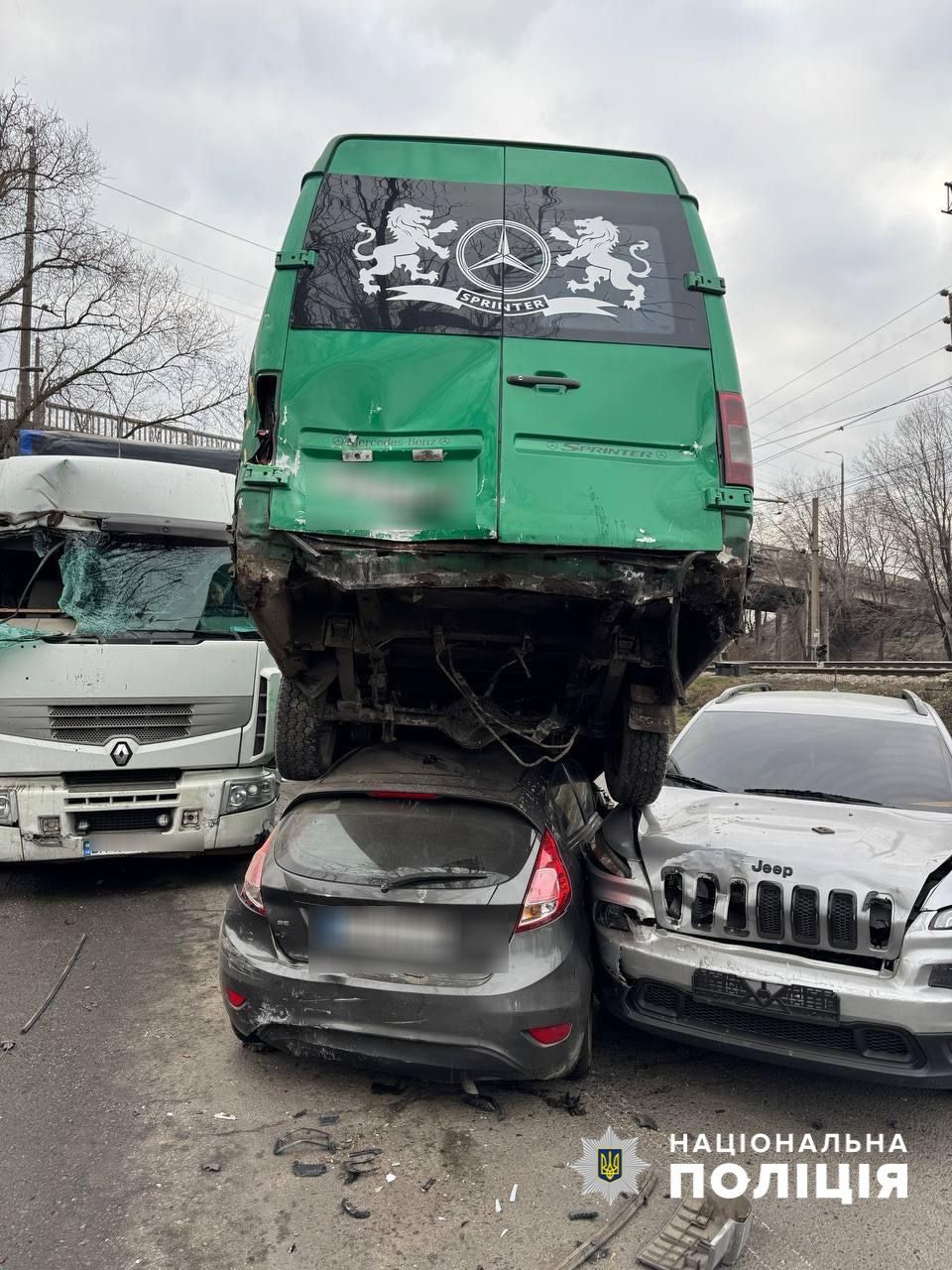 Дорожньо-транспортна пригода сталася 3 березня на вул. Івана Нечуя-Левицького. Як попередньо встановили слідчі, водій вантажного автомобіля “Renault” здійснив зіткнення з автомобілем “Ford”. Внаслідок удару автомобіль “Ford” продовжив некерований рух та врізався у два автобуси й легковик.