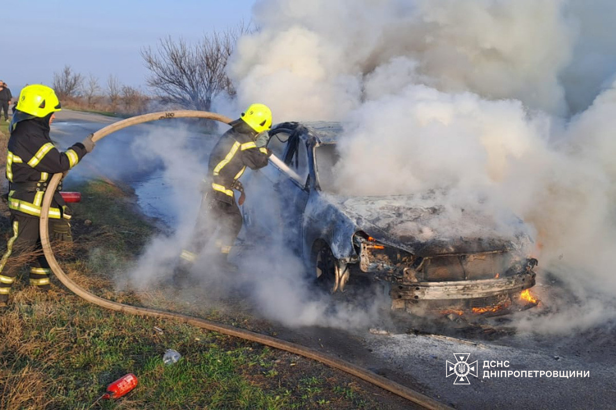 Удень 28 березня до Служби порятунку «101» надійшло повідомлення про займання автівки на вулиці Дніпровій в селищі Аули, що біля Кам’янського.