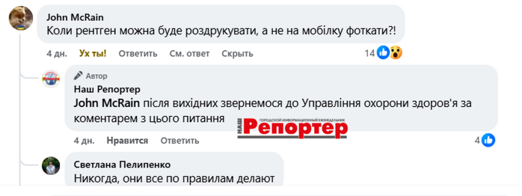 Днями на сторінці «Нашого Репортера» у ФБ з’явився ось такий допис одного з читачів: