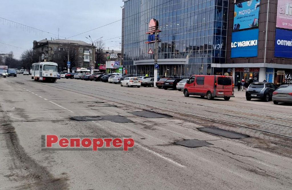Дорожники Каменского провели ямочный ремонт на некоторых участках пр. Шевченко (фотофакт)