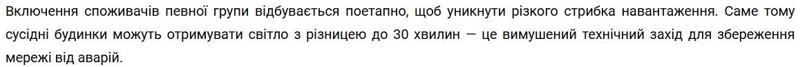 Чому після включення світла будинки, що знаходяться в одній групі, отримують світло в різний час?