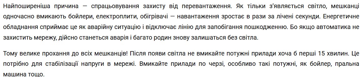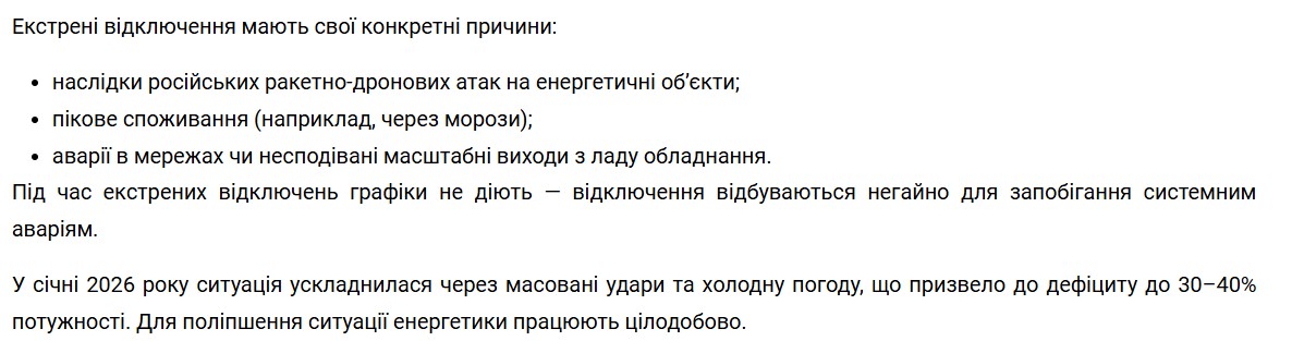 Чому замість стабілізаційних відключень впроваджують екстрені?