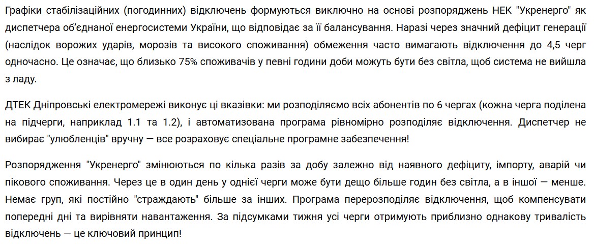 ДТЕК відповідає на деякі наболілі питання кам’янчан щодо відключень світла