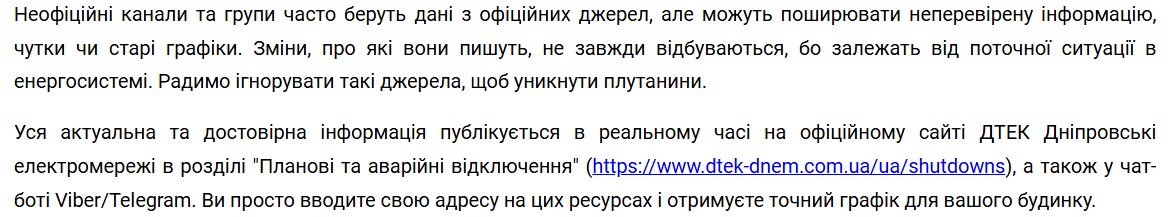 Якими джерелами стосовно графіків вимкнення світла слід користуватися мешканцям і де буде 100% вірна інформація?