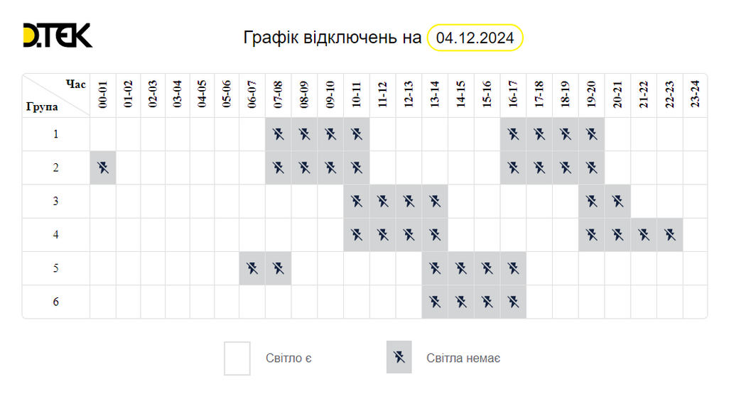 Как сообщили в “Укрэнерго”, 4 декабря для населения ограничения будут такими: