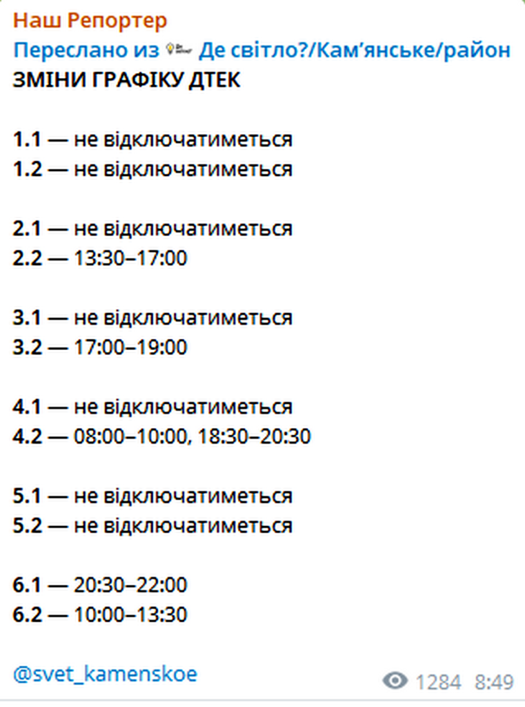 Теги: Графики отключенийграфіки відключень світла кам'янське