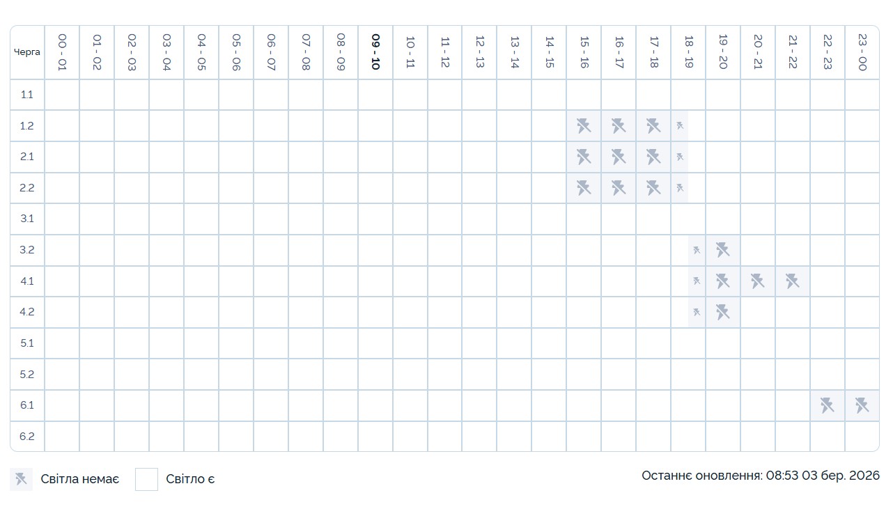 В части регионов Украины 3 марта применяются графики почасовых отключений света. Об этом сообщили в “Укрэнерго”.