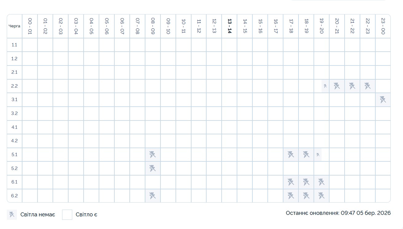 Отключение электроэнергии в Каменском 5 марта (графики, где нет света)