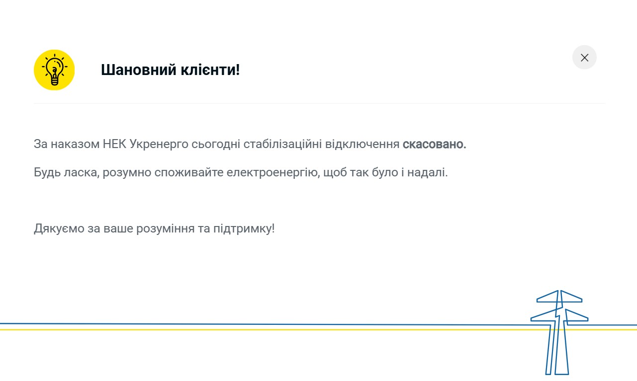 По приказу НЭК “Укрэнерго” утром 5 марта стабилизационные отключения на Днепропетровщине отменены.