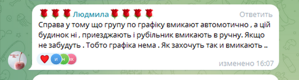 От редакции. Во-первых, не будем забывать, что первопричина отсутствия света – это вражеские обстрелы. Но вместе с тем очень важно, чтобы работа энергетиков по ограничению электроснабжения в это непростое время была максимально прозрачной и не допускала злоупотреблений.