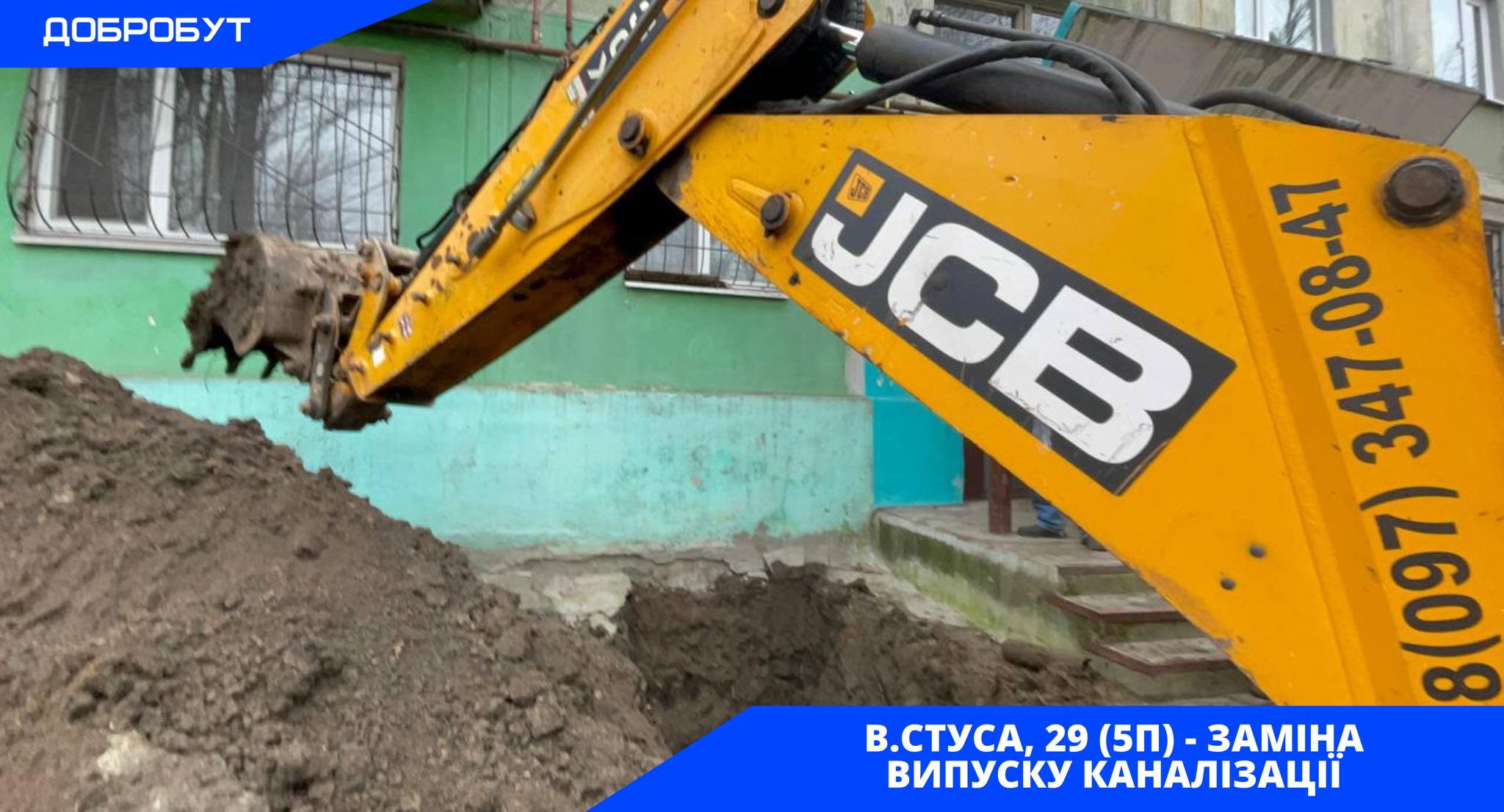 Рабочие взялись за замену выпуска канализации на пр. В. Стуса, 29 (пятый подъезд).