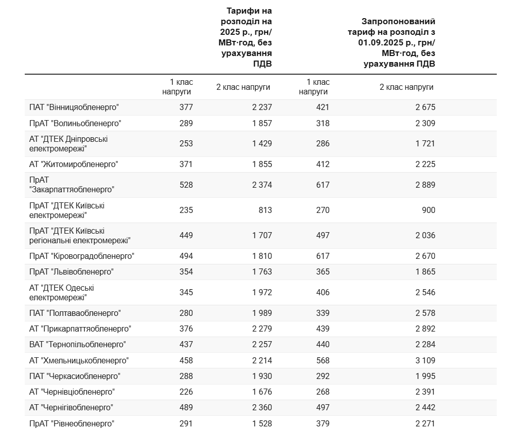 Наибольшее повышение ожидается для Ривнеоблэнерго, Кировоградоблэнерго и Хмельницкоблэнерго. Наименьший рост прогнозируется для Черниговоблэнерго, Черкассыоблэнерго и Львовоблэнерго.