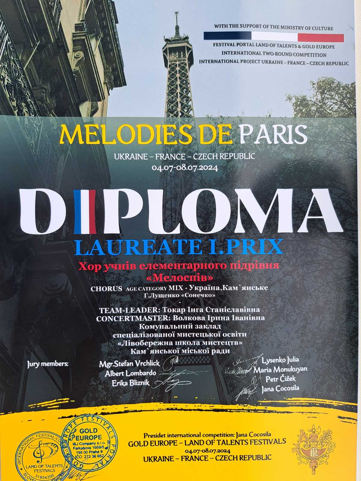 Руководитель Инга Токар получила от организаторов благодарность за высокие профессиональные достижения в воспитании творческого потенциала участников и подготовке их к конкурсу.