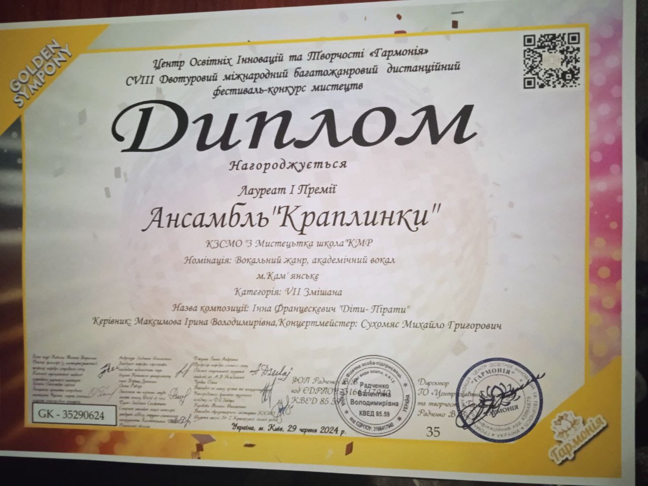 В Киеве 29 июня состоялся Международный многожанровый двухтуровый дистанционный фестиваль-конкурс искусств Golden Symphony. Организатором творческого мероприятия выступил Центр образовательных инноваций и творчества “Гармония”.