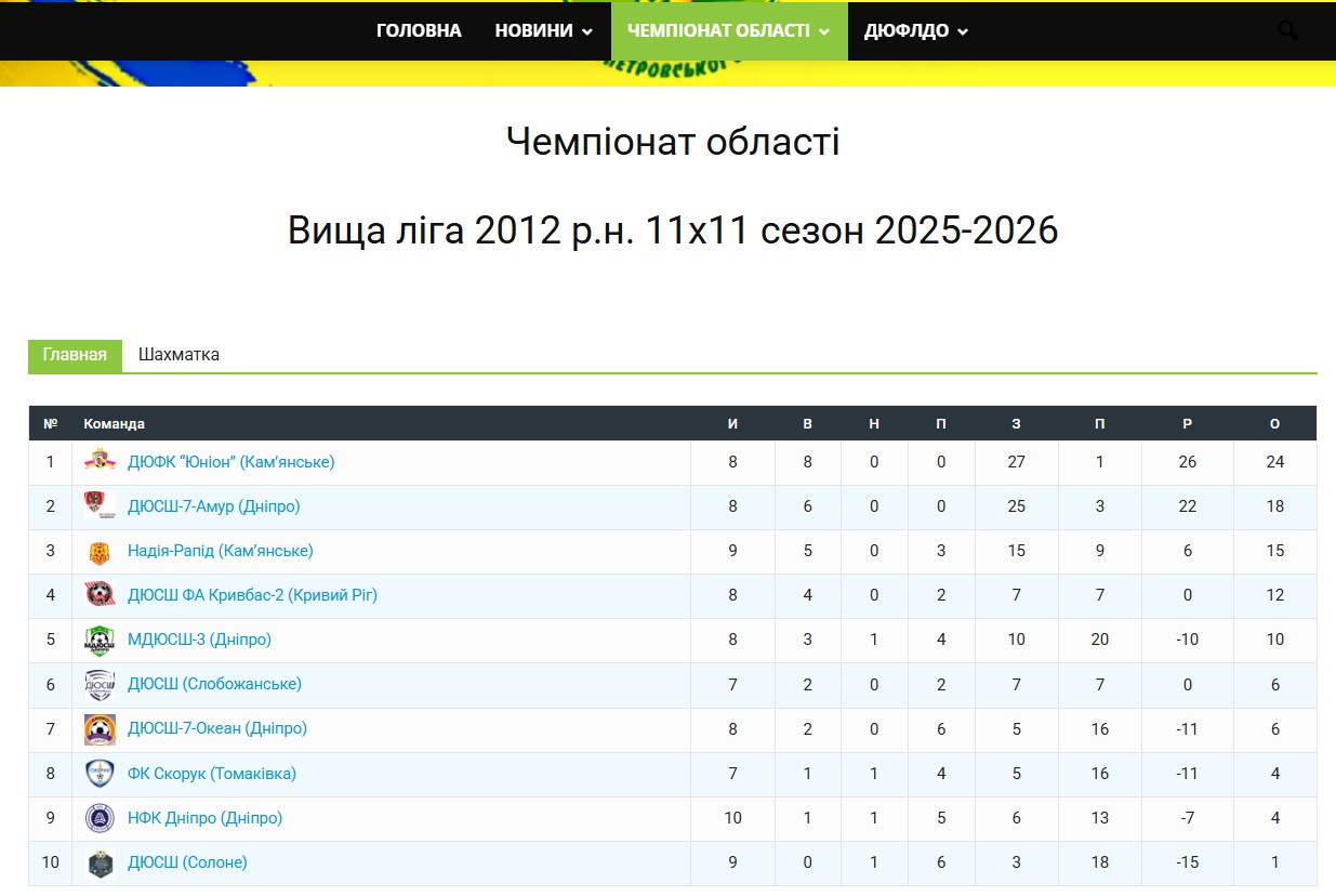 Команда мальчиков 2012 года рождения уже завершила выступления в осенней части областного чемпионата. Показав отличный уровень игры, “Юнион” одержал восемь побед в восьми матчах и уверенно занимает первое место в турнирной таблице высшей лиги Днепропетровской области.