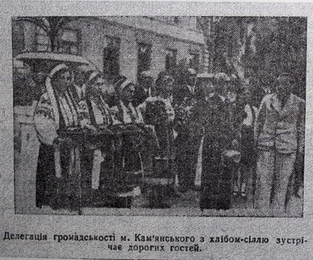 Сегодня, к сожалению, здание находится в заброшенном состоянии, в нем еле теплится деловая жизнь. Глядя на старые стены, уже не верится, что когда-то в этом доме работали Леонид Брежнев (на должности зампредседателя горсовета 1937-38 годы) и Владимир Щербицкий (руководитель горкома, 1952). Кстати, именно возле этого дома в 1942 году делегация горожан, живших в оккупации, торжественно встречала высоких чинов фашистской Германии: Альфреда Розенберга и Эриха Коха. Документов, свидетельствующих, что они заходили в сам дом, нет, но то, что торжества проходили под его окнами – это факт. Снимок из газеты тех лет ниже: