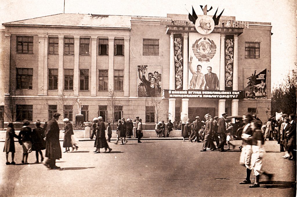 В конце октября любителей истории города порадовали редким фото. Его опубликовал известный краевед и писатель Александр Слоневский. Снимок датируется 1938 годом. На нем ухоженный трехэтажный административный дом с агитационными плакатами того времени, при этом его фасад обращен на довольно людную улицу.
