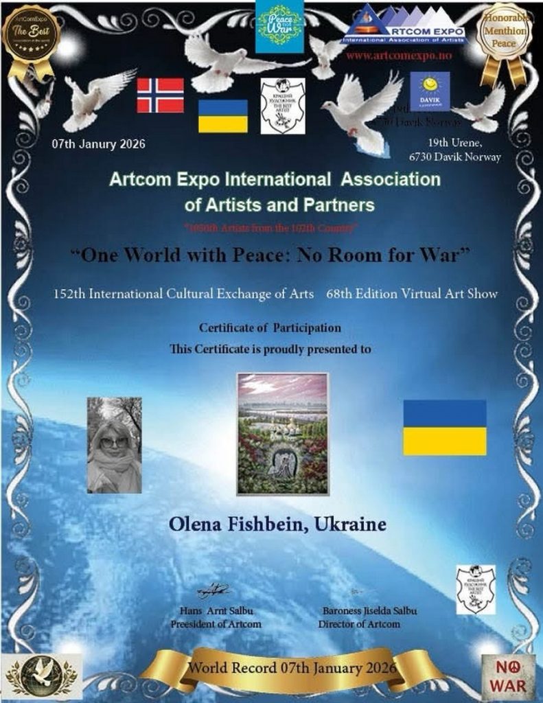 Участие Елены стало возможным благодаря содействию организатора выставки из Норвегии Baronesa Jiselda Salbu и координатору, народному художнику Украины Владимиру Козюку.