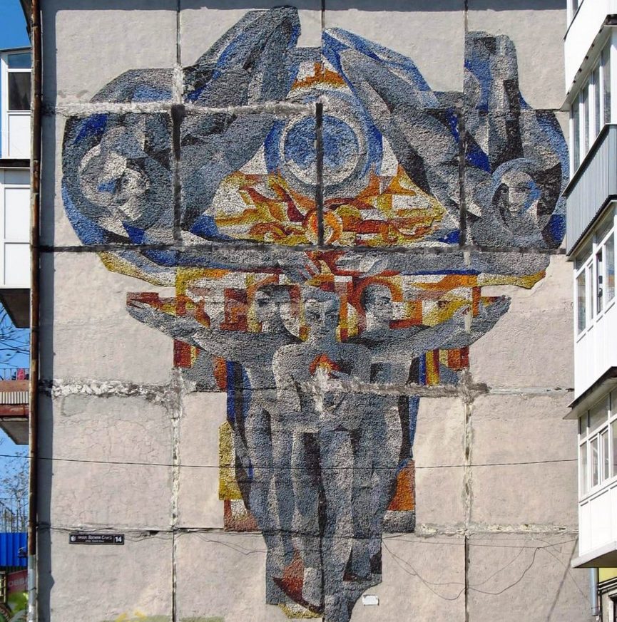 Супруги-художники Михаил и Любовь Келлер известны в нашем городе как создатели ярких мозаичных панно на разных зданиях. Самая большая из их работ, сохранившаяся до наших дней – «Космос». Она находится на проспекте Стуса (Комсомольский), на торце панельной пятиэтажки, что напротив бывшего кинотеатра «Комсомолец».