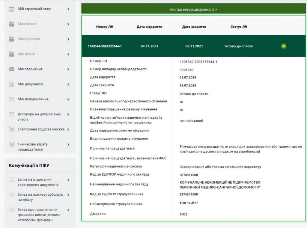 2. В левом боковом меню выберите вкладку «Тимчасова втрата працездатності».
