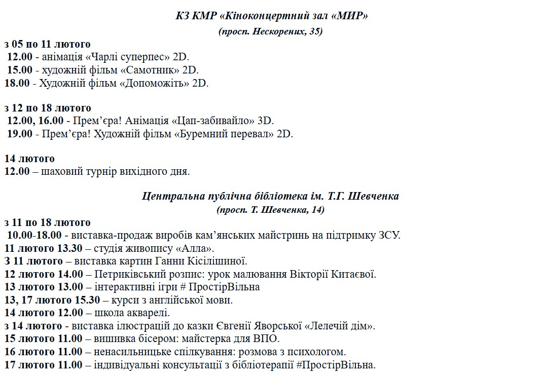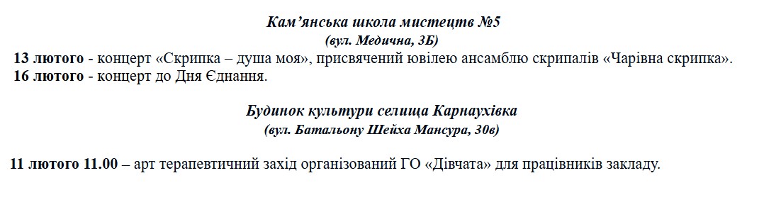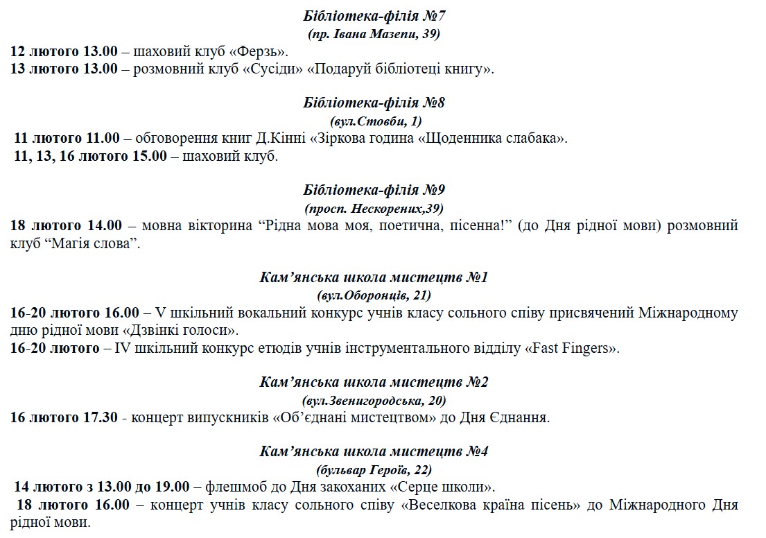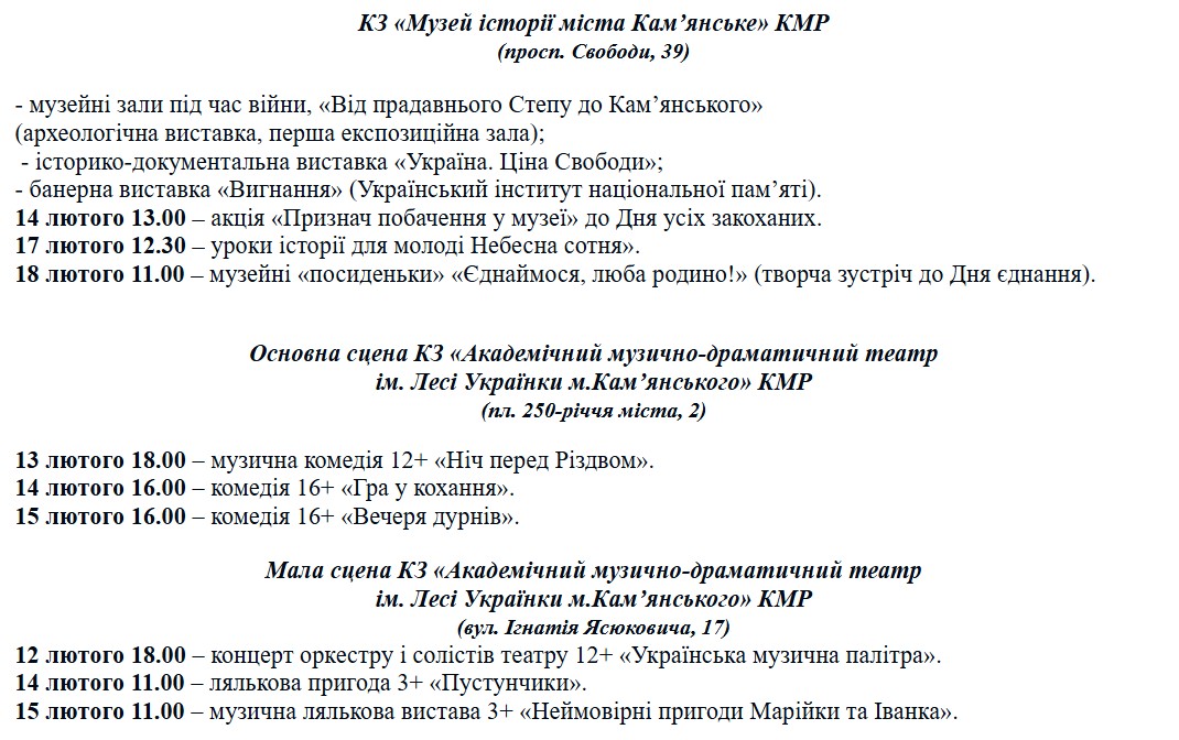 Куда пойти в Каменском: программа мероприятий с 11 по 18 февраля