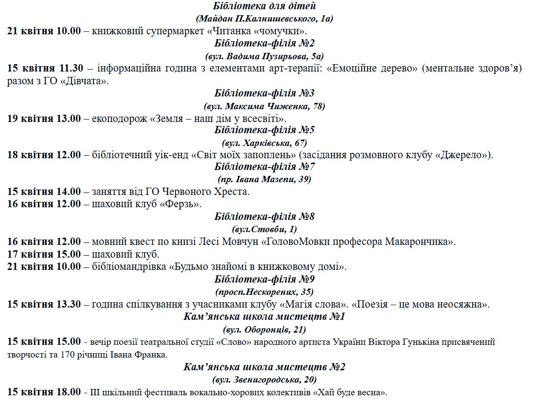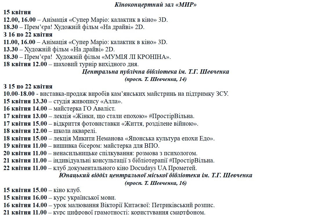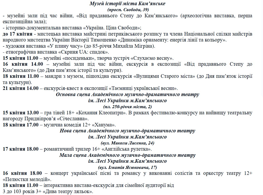 Куда пойти в Каменском: программа мероприятий с 15 по 22 апреля