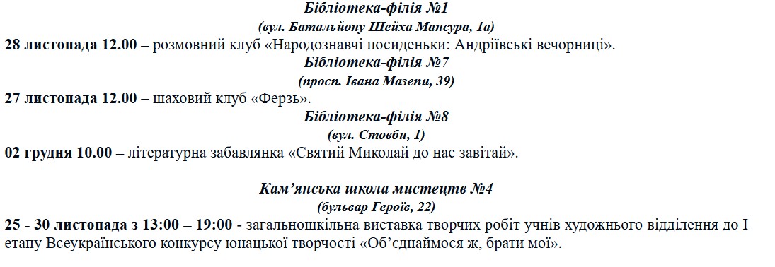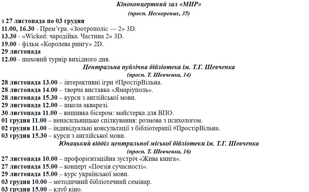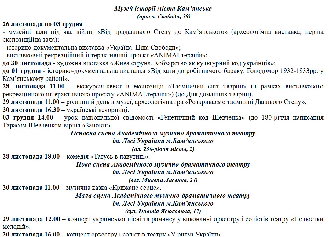 Куда пойти в Каменском: программа мероприятий с 27 ноября по 3 декабря