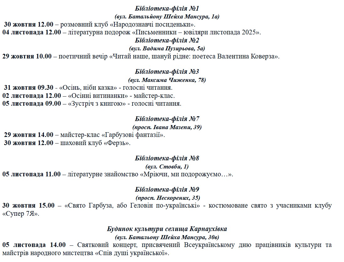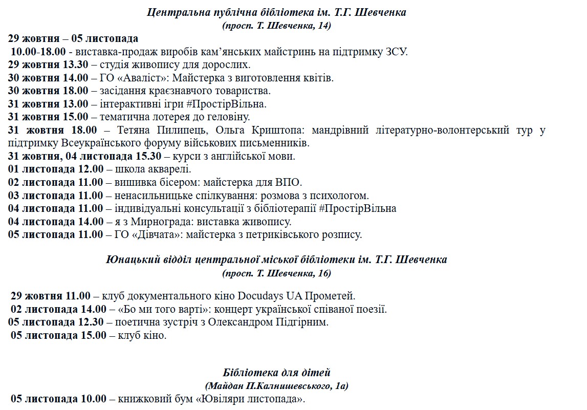 Куда пойти в Каменском: программа мероприятий с 29 октября по 5 ноября