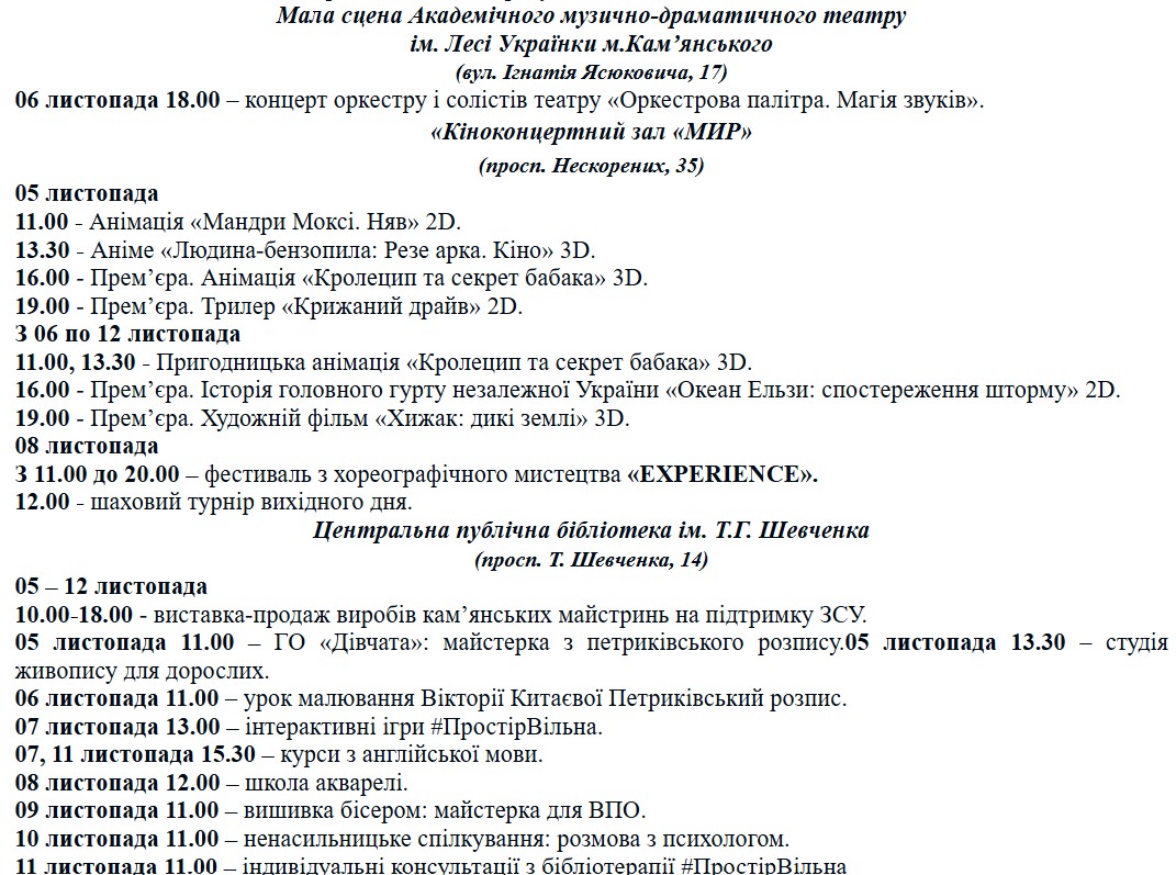 Куда пойти в Каменском: программа мероприятий с 5 по 12 ноября