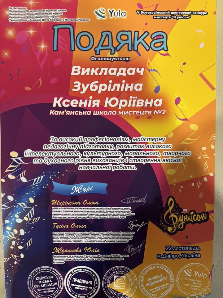 Яркое творческое событие – V Всеукраинский двухтуровый конкурс искусств “В унисон” – состоялось 22 ноября.