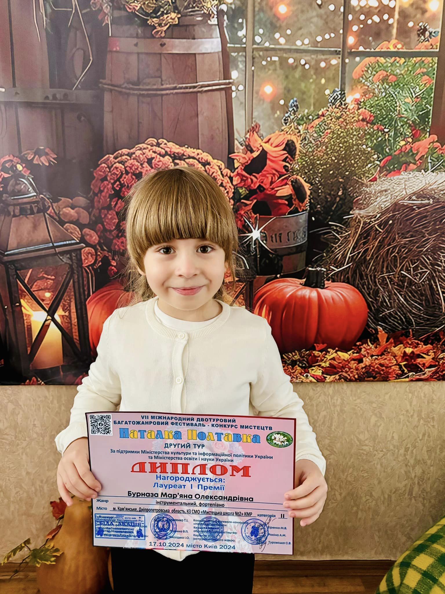 Успешный результат показала воспитанница каменской школы искусств № 2 Марьяна Бурназа.