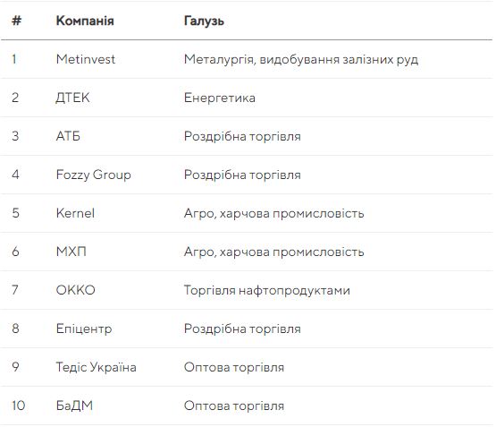 У рейтингу найбільших приватних компаній України представлено підприємства з виторгом від 4,7 млрд грн