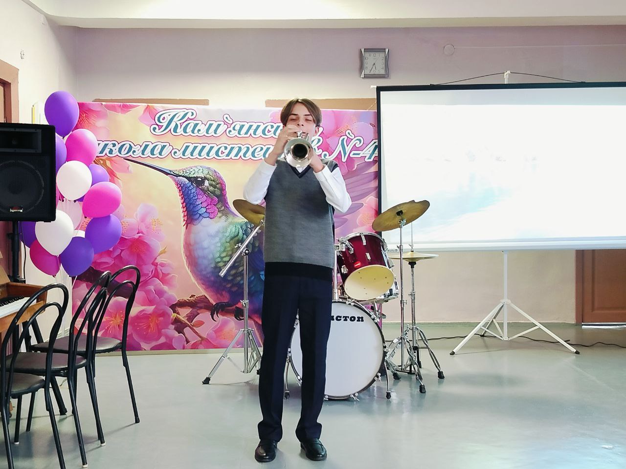 Отчетный концерт учеников оркестрового отдела Каменской школы искусств № 4 был посвящен Международному дню Европы. Этот праздник в Украине отмечается 9 мая. Очаровательной ведущей вечера была Елена Жила.