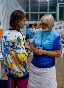 «Від себе можу сказати, що скільки пам’ятаю турніри «SWIM SHARKS», то організація і проведення завжди відбувались за участю Людмили Анатоліївни. На фото травень 2021 року, Людмила Анатоліївна нагороджує мою доньку. На той момент ми були представниками Харкова, а зараз живемо на два міста і наша подружка Оксана Вербенко (теж харків’янка) тренується у Людмили Анатоліївни. Вона її перший і улюблений тренер».