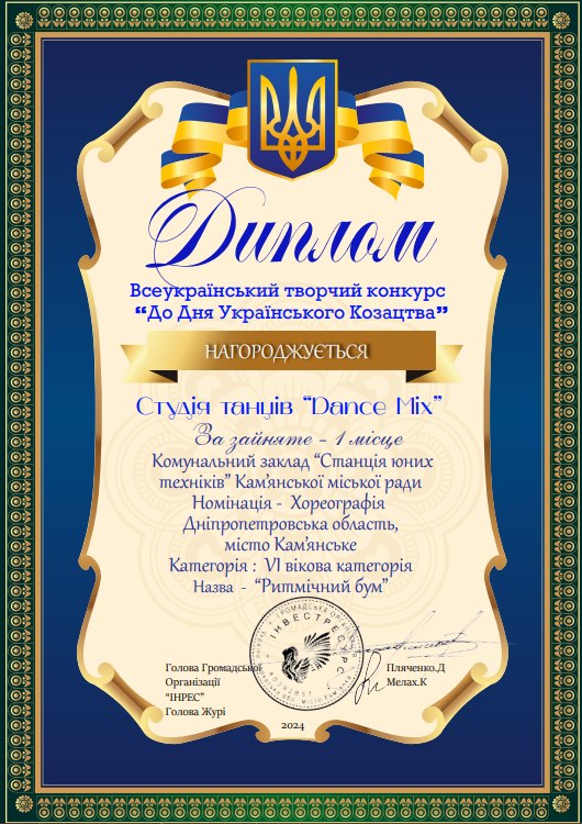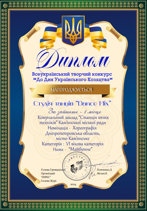 Dance Mix представила два выступления: “Ритмічний бум” и “Майбутнє”. Оба заняли первое место в номинации “Хореография” (VI вековая категория). За победу в конкурсе студия получила дипломы. Поздравляем юных танцоров и их наставницу с заслуженными наградами, желаем покорять новые творческие вершины!