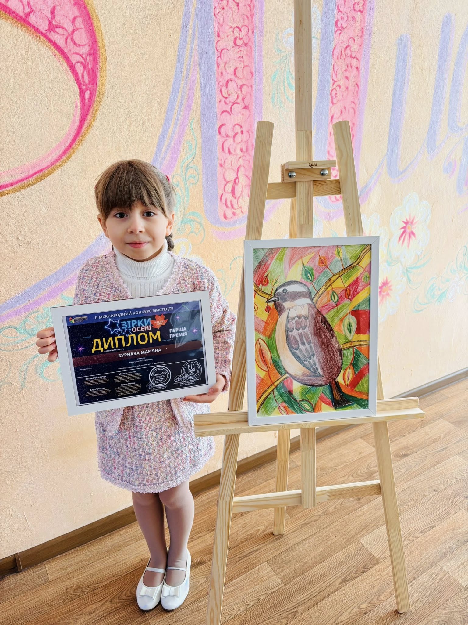 Марьяна также победила на II Международном конкурсе искусств “Звезды осени“, который состоялся 20 сентября в Киеве. Ученица школы искусств представила на рассмотрение жюри творческую работу “Горобчик“. Талант и упорный труд юной художницы были снова по достоинству оценены, что принесло ей очередной триумф – диплом I премии.