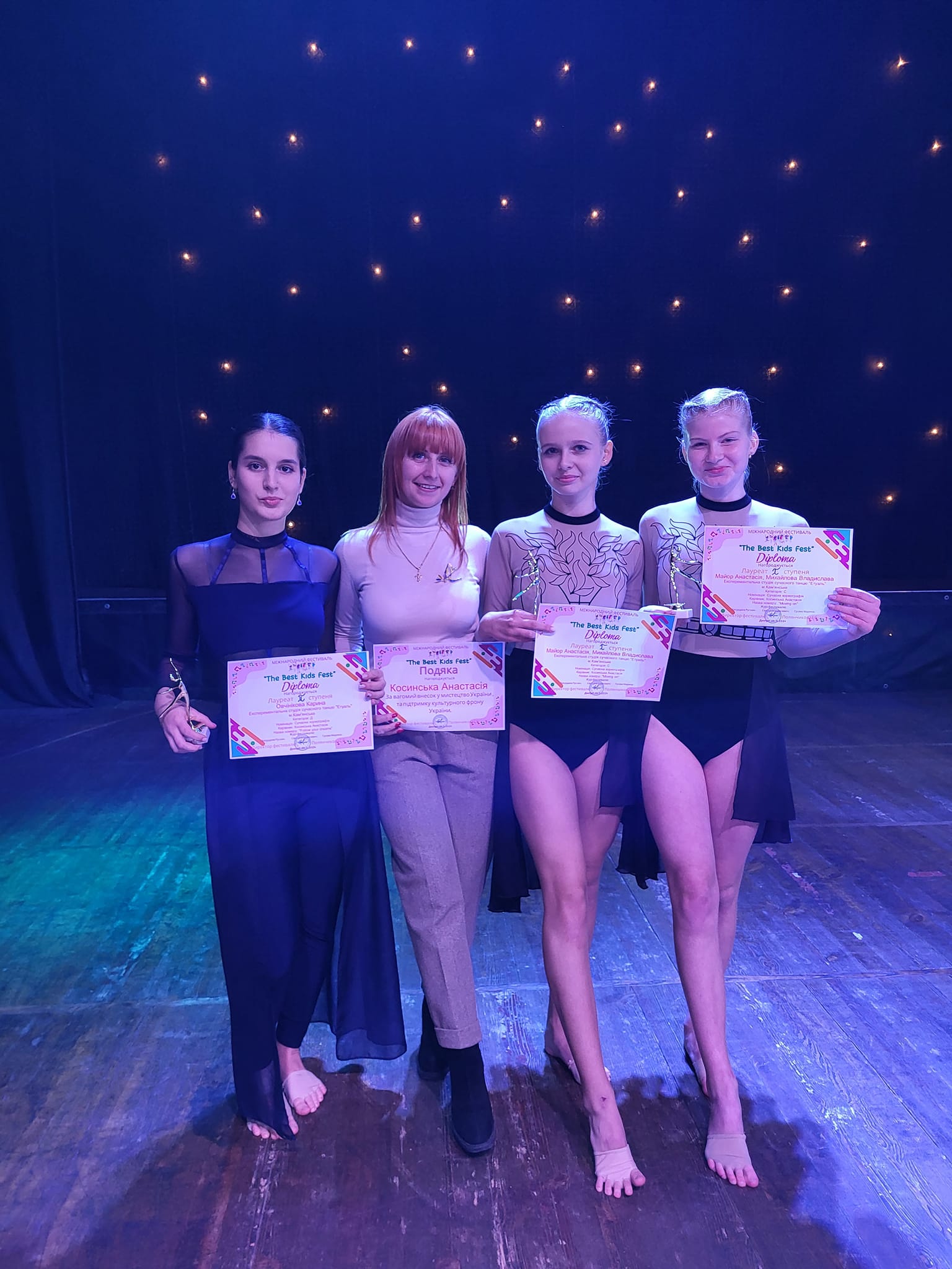 Средняя группа: Майор Анастасия, Михайлова Владислава, Косинская София, Овчинникова Карина, Кожемякина Анастасия, Деркульская Анна, Морозова Надежда, Васильева Елизавета, Цыбулько Маргарита, Бондаренко Милана, Шитикова Алиса, Руденко Мария, Яремчук Милана, Акименко Мілана. Номинация “Эстрадная хореография”, номер “Соловей”.
