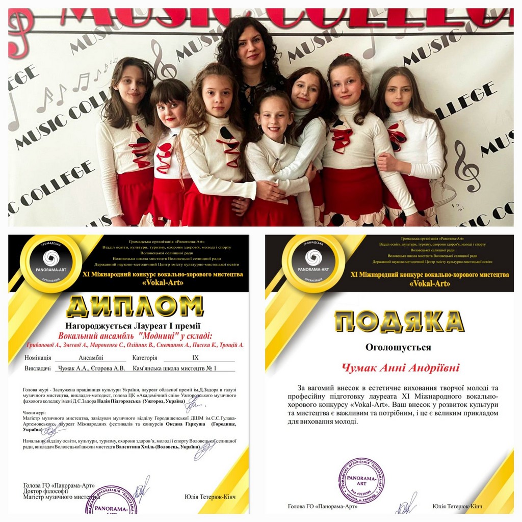 Это яркое мероприятие собрало одаренных исполнителей со всей Украины и из-за рубежа. Среди участников блестяще заявил о себе вокальный ансамбль “Модницы” из Каменской школы искусств № 1. Наши девочки одержали победу и получили диплом лауреата I премии.