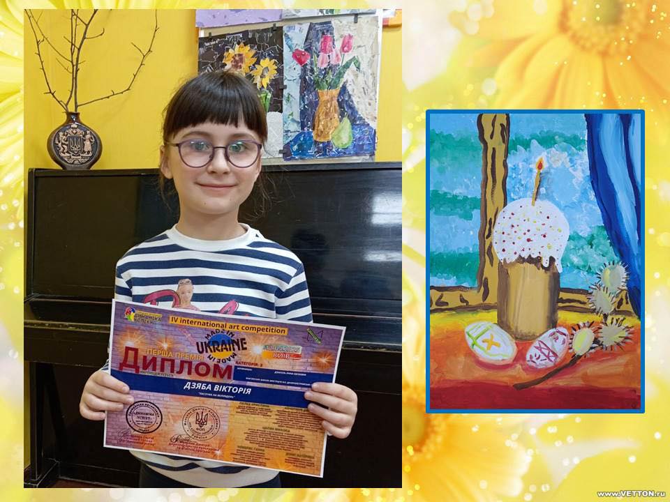 Ученицы отделения изобразительного искусства (преподаватель Ирина Дзингель) победили на IV Международном художественном конкурсе Made in Ukraine от ОО “Динаміка успіху”. Его итоги подвели 12 апреля в Киеве. Девочки завоевали первые премии, поразив жюри своими оригинальными творческими работами. Их яркие рисунки стали настоящим украшением конкурса и продемонстрировали высокий уровень художественного мастерства.