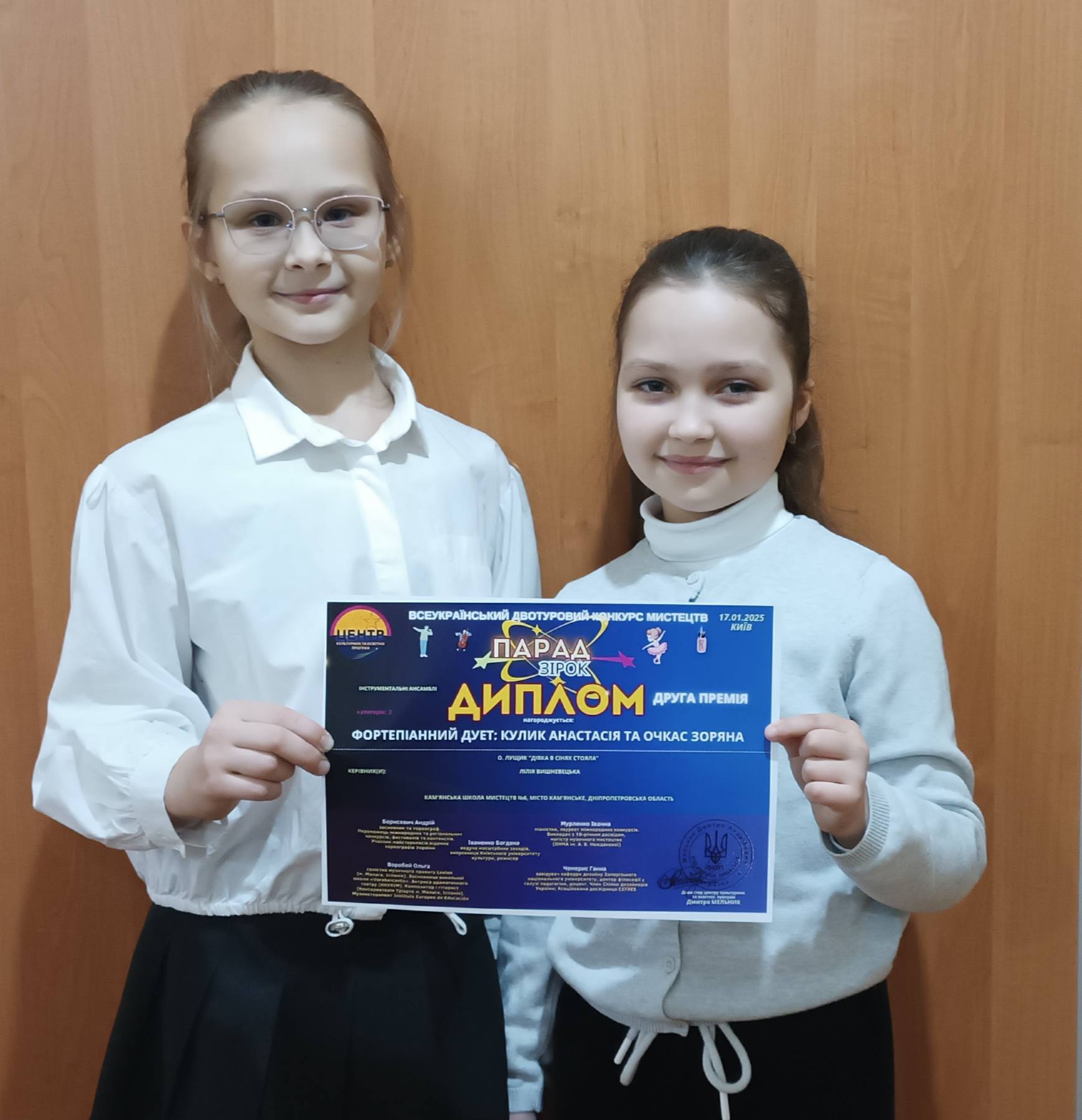 • Фортепианный дуэт (Анастасия Кулик и Зоряна Очкас) – диплом ІI степени (преподаватель Лилия Вишневецкая);