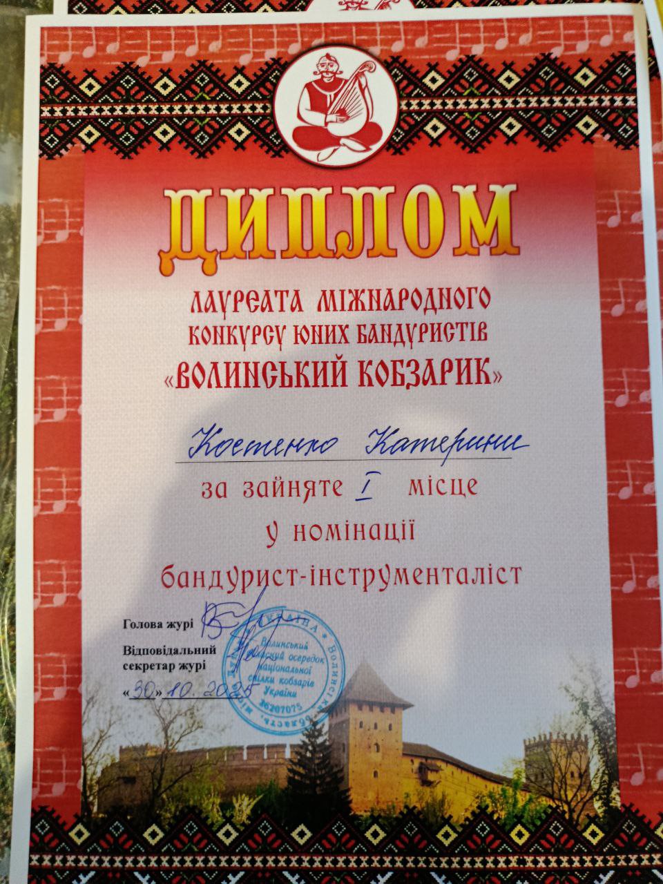 Ученицы Каменской школы искусств № 3 стали лауреатами Международного конкурса “Волинський кобзарик”