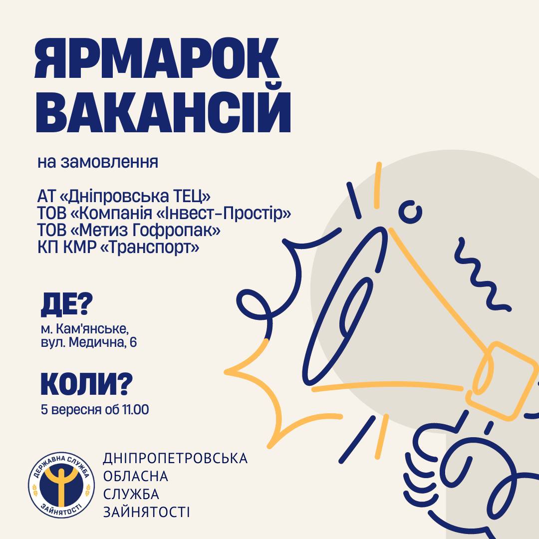Каменской филиал Днепропетровского ОЦЗ приглашает всех желающих принять участие в ярмарке вакансий.