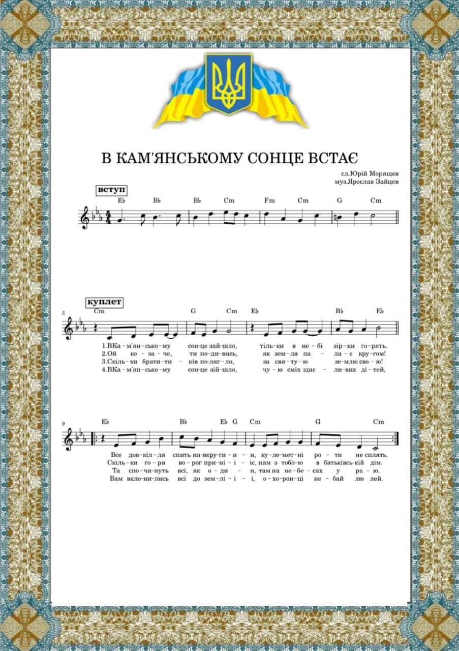 Она называется “В Кам’янському сонце встає”.
