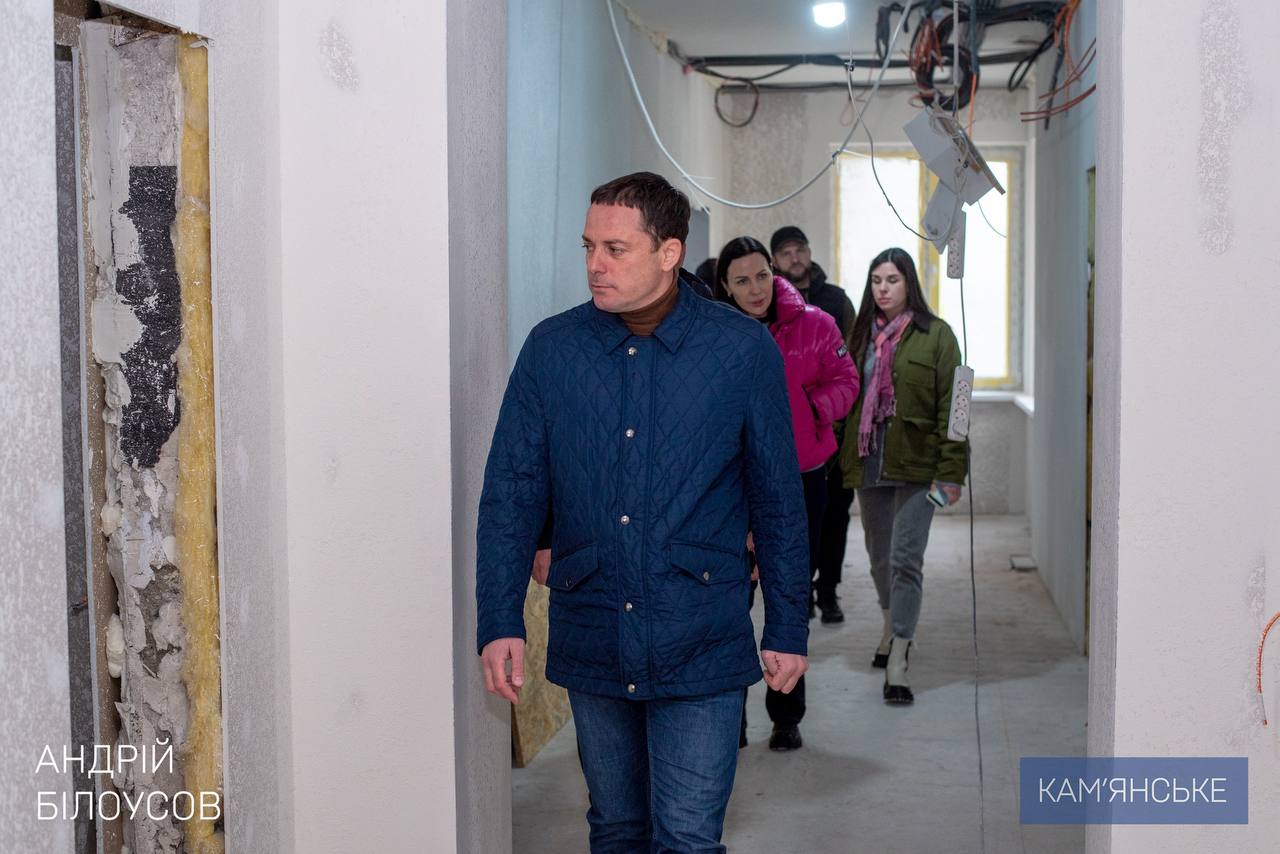 Мэр Каменского Андрей Белоусов проверил, как продвигается капитальный ремонт общежития для временного проживания внутренне перемещенных лиц.