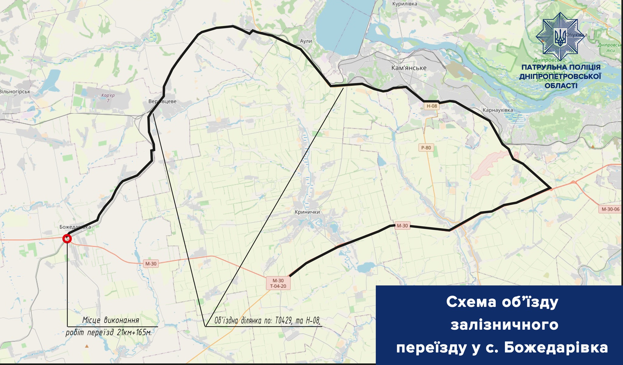 В субботу и воскресенье, 27 и 28 апреля, вводится временное ограничение движения транспорта по автодороге М-30. Причина – ремонт железнодорожного переезда в районе села Божедаровка Каменского района.