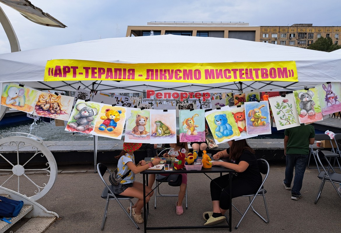 Площадка у киноконцертного зала “Мир” на некоторое время превратилась в территорию искусства. В четверг, 12 сентября, здесь состоялся благотворительный культурный марафон в поддержку ВСУ “Наша підтримка – їхня сила”.