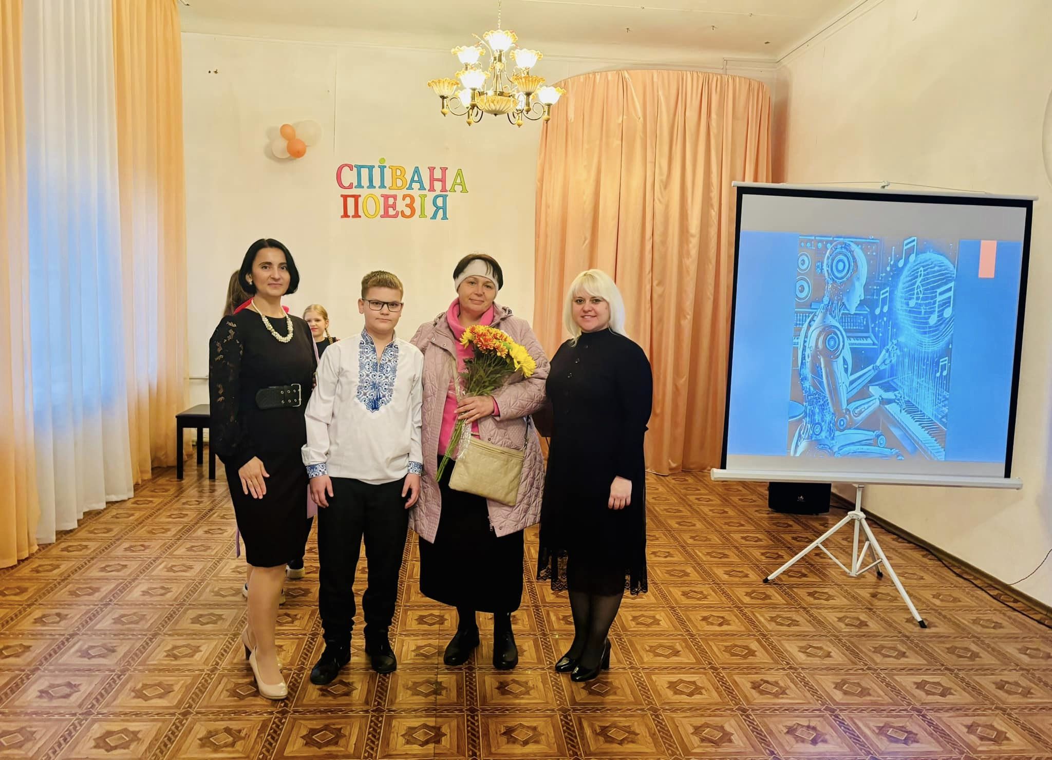 Также на мероприятии присутствовала Людмила Анатольевна Науменко – творческая жительница Каменского и поэтесса, которая обращалась с ходатайством к городскому голове с просьбой помочь положить на музыку свои стихи. Преподаватели с помощью искусственного интеллекта воплотили в жизнь мечту поэтессы, и на концерте прозвучала премьера песни “Оберіг” в исполнении ученика заведения Егора Голенко.
